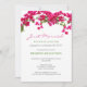 Lindas flores realistas de buganvília vermelho-fúcsia ardente em vinhas | design simples e fácil de ler | cartão postal de convite de recepção de casamento para fuga, sem cerimônia formal de casamento