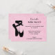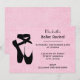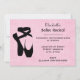 Um convite para recital de dança de ballet. Uma ilustração de silhueta de um par de sapatos / chinelas de ballet pretos na pose clássica e contemporânea dos dançarinos de ballet nas pontas dos pés, conhecida como en pointe. O fundo é rosa com pequenos pontos brancos. Personalize com os detalhes do seu evento.