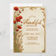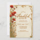 Celebre a gratidão e a beleza da época de colheita com esta design de Ação de Graças. Apresentando papoilas vermelhas vivas e trigo ouro num pano de fundo texturizado a quente, capta a essência da abundância do outono. A mistura de elegância botânica e encanto natural torna-a perfeita para jantas familiares aconchegantes, reuniões de amizade ou celebrações sazonais. Personalize facilmente todo o texto para torná-lo exclusivamente seu.