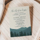Este retiro às montanhas verde "a aventura começa" é perfeito para um casamento moderno. A design apresenta uma serena esmeralda e uma faixa verde-aquarela com uma floresta de árvores verdes em primeiro plano. É perfeito para um casamento de destino. Para obter mais opções de texto de convite para casamento, consulte a opção Retreat completa para a Coleção de Casamentos de Montanhas: https://www.zazzle.com/collections/119414504870877351