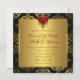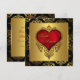 Rich gold damask com o belo coração vermelho elegante convite para casamento vermelho preto e ouro.