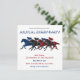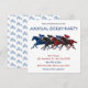 Bring the thrill of the homestretch to your mailbox with this vibrant Annual Derby Party invitation. Featuring a stunning, detailed illustration of four thoroughbreds and jockeys in a dead heat, this design uses bold blues and reds to create a high-energy feel. The back of the card features a coordinated blue-and-white horse pattern for a polished, professional look. Perfect for any race day gathering, this customizable invite sets the stage for a winning afternoon of Mint Juleps and high-stakes fun.