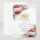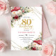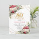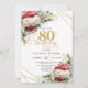 Convites Red blush roses 80th birthday invitation with gold