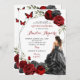 Red Burgundy Rosas Black Dress Quinceañera Convite