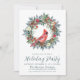 Imprima seus convidados com este convite elegante para festas de Feriado. Um cardeal vermelho fica no centro de uma coroa de pinheiros tradicional decorada com pinecones, bagas e flores. A Festa de Natal está escrita num roteiro moderno. Os detalhes da sua festa o cercam. Você terá um convite profissional facilmente concluído em minutos. Este item faz parte da coleção Elegante do Cardeal Férrea de Natal. Ele contém os modelos que você pode usar para criar um conjunto de convites exclusivo e coordenar suprimentos da parte.