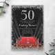 Hollywood temia 50º convites de festas de aniversários. Design apresenta um holofote vermelho e uma falsa borda cintilante prateada para comemorar um aniversário marcante. Os designs são gráficos impressos planos - NÃO É O GLITTER REAL.