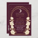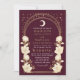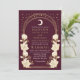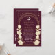 Capture a elegância do eterno com este convite inspirado no Celestial Art Nouveau! Apresentando um arco radiante de ouro, delicadas flores brancas, e cintilando estrelas contra um rico fundo vermelho de amora, esta design dá o tom para uma celebração sofisticada. Perfeito para casamentos, galas e eventos de marco! Note que o ouro neste produto NÃO é folha de alumínio real; é impresso plano.