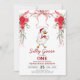 Red Christmas Silly Goose Girl 1st Birthday Invitation. Hand painted watercolor Christmas floral arch and silly Christmas goose illustration 1st birthday invitation. Fun girl first birthday invitation in red.