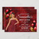 Convites Red & Dourado Sweet 16 Girl Birthday