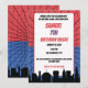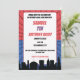 Este convite de aniversário apresenta uma silhueta de uma cidade, e teias de aranha em fundo azul e vermelho. Este convite de super-heróis vermelho e azul de aniversário está pronto para ser personalizado e é adequado para uma festa de aniversário de super-heróis de aranha.