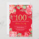 Convites Red Floral 100th Birthday Dourado Glitter e Red