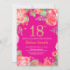 Red Floral 18º Aniversário Convite para Mulheres. Flor Botânica De Aquarela Dourada Glitter. Fundo Rosa Quente. Flores Florais De Pêonias Rosa. Aniversário Adulto. Para mais personalização, clique no botão "Personalizar" e use nossa ferramenta de design para modificar este modelo.