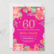 60º Aniversário do Red Floral Convite para Mulheres. Flor Botânica De Aquarela. Dourada Glitter. Fundo Rosa Quente. Flores Florais De Peões Rosa. Aniversário Adulto.