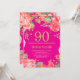 Convite de Aniversário para 90 Vermelho para Mulheres. Flor Botânica De Aquarela Dourada Glitter. Fundo Rosa Quente. Flores Florais De Pêonias Rosa. Aniversário Adulto. Para mais personalização, clique no botão "Personalizar" e use nossa ferramenta de design para modificar este modelo.