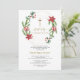 Design elegante e único, com galhos de pinheiro de cor aquática, bagas, bolas de Natal, arranjo de mãos douradas como uma coroa de férias de inverno, cruz de ouro falsa e caligrafia moderna de "primeiro sagrado", num fundo branco. Use a ferramenta Personalizar para adicionar suas informações. Para encontrar itens, por favor, visite a minha Encantadora coleção de eventos religiosos.