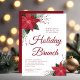 Convite para o Brunch de Feriado Vermelho Personalizado para Poinsettia Floral Vermelha Holiday.