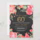 Red Floral Surpresa 60º Aniversário Convite para Mulheres. Flor Botânica De Aquarela Dourada Glitter. Flores Florais De Pêonias Rosa. Aniversário Adulto. Fundo Chalkboard. Para mais personalização, clique no botão "Personalizar" e use nossa ferramenta de design para modificar este modelo.