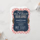 O convite de chá de casamento de Denim e Diamantes sobre o padrão de gingham vermelho e creme em jeans azuis na textura do filme. Design oeste russo com denim e couro parecem design. Excelente para vaqueiras!