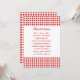 Estes convites bonitos e elementos de coordenação são impressos com um padrão de gingham vermelho. Clique em "personalizar" para alterar o plano de fundo branco para sua cor favorita.