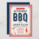 Celebrar uma aposentadoria com um churrasco. Este convite para CHURRASCO de aposentadoria apresenta um centro de tonalidade laranja claro, bordado por um padrão de gingham vermelho e com grampos de CHURRASCO como enchido, ketchup e garrafas de mostarda. A placa inclui um lado azul sólido. Personalize este convite de festas de churrasco substituindo o texto do marcador de posição no modelo para adicionar suas informações. Para obter mais opções, como alterar a fonte e seu tamanho, clique no botão "Personalizar". *Observe que a Marca d'água do Zazzle que aparece na visualização de zoom NÃO aparecerá no produto impresso final. Alguns gráficos de Prettygrafik Design (https://www.etsy.com/shop/Prettygrafikdesign). Convite para CHURRASCO por © Rosewood e Citrus