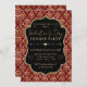 Convites Red & Gold Heart Damask Valentine's Dinner Party