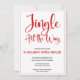 Red Jingle All the Way convite de festas com bonito letra de script. Listras vermelhas e brancas atrás. Bonito e festivo!