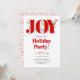 Esta maravilhosa alegria vermelha com as bagas do Natal é a forma perfeita de convidar seus convidados para a sua próxima comemoração de Férias. Apresenta a palavra "JOY" numa letra festiva com bagas vermelhas e verde, bem como o seu texto personalizado por baixo. O verso do convite inclui um padrão alegre de bolinhas vermelhas e flocos de neve para um olhar verdadeiramente festivo. Certifique-se de que seus convidados tenham todas as informações necessárias para comparecer ao seu evento especial, incluindo os detalhes de sua celebração neste belo convite. O cobrir foi projetado usando alguns recursos de Freepik.com