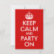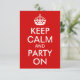 Áreas de texto personalizáveis em uma paródia vermelha e branca "Manter calma e festa ligada" para uma festa de aniversário.