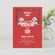 Convite de aniversário do miúdo. Qualquer aniversário de idade. Chute. Futebol. Vermelha.