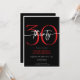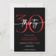 Moderno e chic, este convite de aniversário combina preto clássico e branco com sotaques de vermelho vivo. É um design mínimo é um design simples e divertido para celebrar o aniversário do marco. A parte traseira retém uma área para um código QR para resposta RSVP. Criado pela imprensa simplesmente de farmácia.