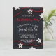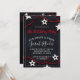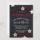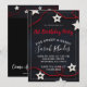 Um convite de aniversário caprichoso único e moderno para uma jovem que apresenta um convite doce e assombroso, estrelas brancas e cordas vermelhas a preto, com uma tenda tipografia branca. Personalizar para qualquer idade. Um legal vermelho sobre o tema da design a preto. Estilo novo e jovem.