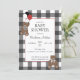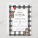 Convites Red on Black Buffalo Check Teddy Bears Baby Shower