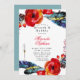Este design apresenta elementos florais com papoilas de laranja vermelhas e penas de boho azul-lacrimogêneo. Excelente para as comemorações do casamento! Esta é uma coleção de mistura e combinação. Aproveite