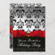 Convites RED RIBBON WHITE BLACK DAMASK HOLIDAY PARTITY Ruby