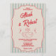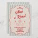 Convites Red Script Blue Stripes Retro Photo Wedding