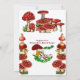 Uma festa de aniversário fofa, convidada para Crianças com um rato de jardim debaixo da sua casa de cogumelos. As crianças vão adorar as ferramentas vermelhas, a fada do jardim e o rato fofo. Facilmente personalizado para sua escolha de estilo de fonte e texto. Visite minha loja todlers_canto para uma coleção semelhante do tema Toadstool e convites para o Aniversário. Link - https://www.zazzle.com/store/toddlers_corner/
