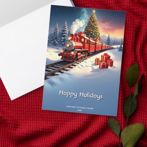 Beautiful Red Train Christmas Tree Holiday Party Invitation