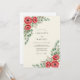 This design features vibrant red ranunculus blooms paired with lush green eucalyptus foliage. The botanical elements are arranged in delicate corners against a warm cream background, creating a romantic and timeless mood. Perfect for a sophisticated nature-themed event, the watercolor textures bring a soft, artistic feel.