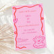 Este estilo desenhado pela mão ilustrado do convite de casamento apresenta uma borda ondulada e um carregando de carapaça de ostras rabisco e um anel de noivado. O design bicho-branco e peculiar inclui estilos de fonte escritos à mão. Colorida, rosa e vermelha, procura um clássico, mas moderno papel de carta de casamento.