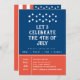 Conte a sua família e amigos sobre a sua festa de 4 de julho com este clássico convite vermelho, branco e azul moderno. A frente da design tem a modelo personalizada que a parte de trás tem uma imagem da bandeira americana. Personalize o design clicando no botão "Personalizar este modelo". Design por Ms_Jade. © 2021 Ms_Jade