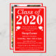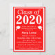 Use este Convite de Foto para Graduação da Classe Branca Vermelha de 2024 para honrar seu formando com as cores escolares. Personalize com seus detalhes de ano de aula, escola e festa. A parte de trás apresenta a foto do seu formando. A classe 2024 é escrita em uma fonte clássica em branco com um fundo vermelho. Uma fronteira vermelha e branca arredonda este tema do espírito escolar.