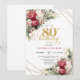 Convites Red white floral gold accent card 80th birthday