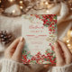 Um convite festivo para o Natal, com frutos vermelhos brilhantes, verde-pinheiro-fosco e sotaques sutis de ouro. O elegante design de aquarela combina calor sazonal com um toque de encanto rústico, perfeito para reunir amigos e família durante as férias. Personalize o texto para torná-lo exclusivamente seu.