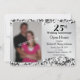 Este convite de 25º aniversário de casamento apresenta um padrão damasco de redemoinho preto como fundo, uma faixa prateada ondulada no centro e uma moldura de foto personalizável. O texto personalizável permite que você adicione os detalhes do seu convite.