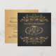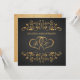 Convite de 50º Aniversário de Casamento com redemoinhos dourados e corações unidos em um fundo preto. No verso - efeito dourado pontilhado, (pode ser removido). Você pode ajustar o texto de acordo com suas necessidades.