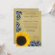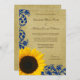 Convites rústicos do casamento do girassol. Caracterizando uma textura de serapilheira do marrom do vintage, uns redemoinhos azuis do flourish e um girassol amarelo. Aperfeiçoe para um casamento do país, o casamento do girassol, o casamento do celeiro e o mais!