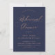 Este elegante convite de janto de ensaio de na moda apresenta muitas caligrafias modernas e sujas de rosa de ouro num fundo azul profundo e à meia-noite.
