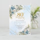 Convites Refined Dusty Blue Floral Gold 80th Birthday Invit