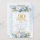 Convites Refined light blue gold wreath 90th birthday