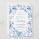 Make a refined first impression with this wedding invitation featuring classic French toile de jouy roses in elegant shades of navy blue, royal blue, dusty blue, and deep blue. Inspired by timeless European floral design, this invitation blends traditional sophistication with modern elegance, perfect for a classic, romantic, or formal wedding celebration.